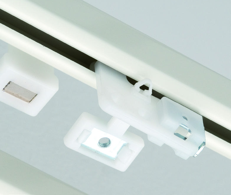 Pour un rendu pratique et esthétique, le rail Legato Primo est équipé d'un arrêt intermédiaire magnétique qui permet le maintien du rideau à sa position lorsque celui-ci est ouvert.