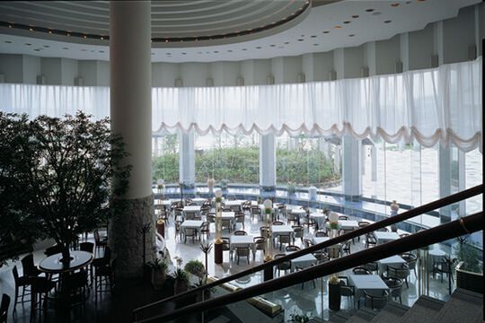 Des stores bateaux dans la salle de restaurant d'un hôtel
