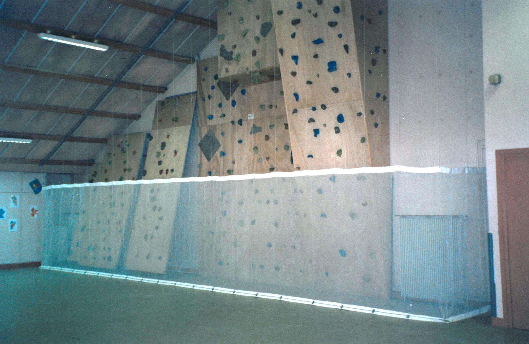 Objectif : assurer la protection totale d'un mur d'escalade installé dans un gymnase des balles et ballons.